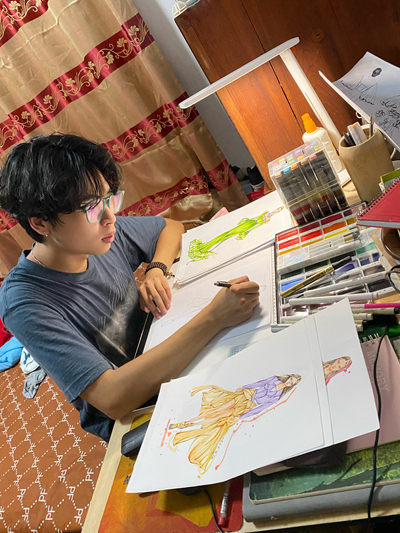 从2017年入校,他连续3年参加宁波国际服装节,从穿衣助理做到后台负责人。通过这个平台,他认识了不少圈内知名时尚大咖,开阔了眼界,提升了时尚敏锐度,在浙纺服院老师的指导下,拿下一个个国家级比赛大奖,连续两年获得浙江省政府奖学金,是浙江省优秀毕业生。王国海文并摄