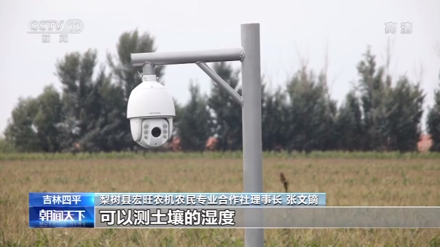 梨树县宏旺农机农民专业合作社理事长 张文镝:这是一个气象哨,它能监控飞蛾的数量,预测一下虫害。可以测风速。可以测土壤的湿度,还可以测降雨量,直接就是通过大数据就传走了。