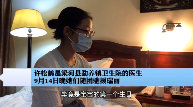许松鹤是梁河县勐养镇卫生院的一名的医生,今天原本是女儿1岁的生日,但驰援瑞丽的她只能通过视频祝孩子生日快乐。(掌上德宏 记者张仁韬 杨立 杨国平 李卫昌)