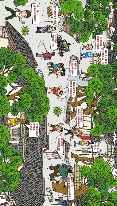 在这幅由学校现代设计艺术学院教师指导学生,利用假期和课余时间,历时4个月绘制完成的画卷中,一个个生活在昆明老街的人物,鲜活地呈现出全国上下共同努力,齐心抗疫的日常场景,十分接地气。
