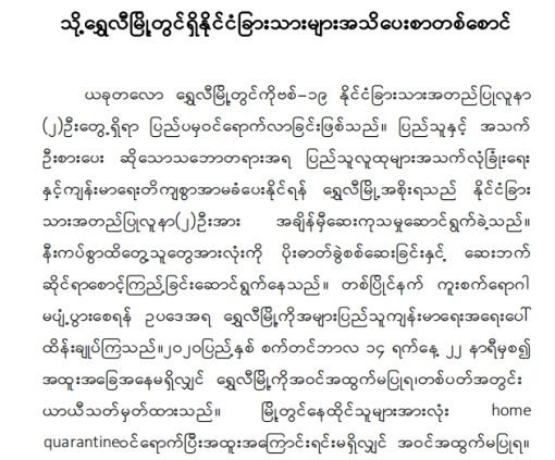 15日,瑞丽市疫情防控指挥部以中英文缅文发出《致在瑞丽外籍人士的一封信》共同携手防疫抗疫,其中,提出,规定时间内,外籍人士核酸检测费用由政府承担。