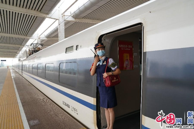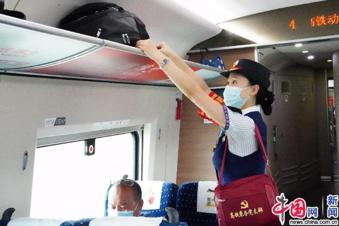 中国网9月21日讯(记者 刘维佳)9月21日,在G421次“刘三姐”号动车组列车4号车门口,列车长孙雪正在迎接旅客上车,她甜美的微笑与胸前闪亮的党章交相辉映,成为站台上一道美丽的风景线。