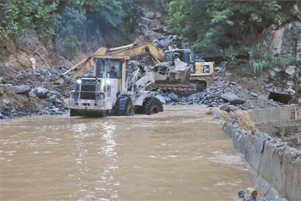 12时30分左右,河床内形成的堰塞湖突然溃坝,将位于山下的323国道U型处一座涵洞堵塞。险情就是命令。13时左右,接到指令的轮装司机们火速赶到国道323处抢险救灾……