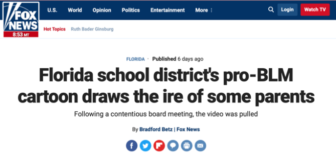 《福克斯》新闻报道称,佛罗里达州一学区的BLM运动相关课程引起了部分家长的不满