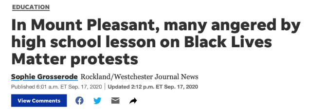 据美国《新闻日报》报道,在纽约州芒特普森莱特校区,许多家长被高中BLM的课程设置而触怒