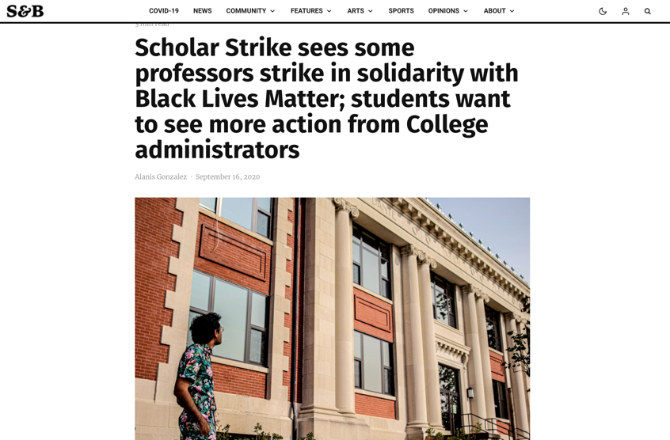 全美学生报刊《血色与黑色》(The Scarlet & Black)报道,当地时间9月8日至9日,全美各地高校的教职人员、学校员工、及研究生在教授们的带领下,纷纷将学业和研究搁置一旁,积极地投身在支持BLM运动的抗议示威活动之中。在罢工期间,各个学校的教授们联合举办了有关反种族歧视和黑人女权主义的讲座。此外,他们还将这些讲座发布在了Youtube平台“学者罢工”的频道上,并希望借此促进BLM运动的广泛传播。