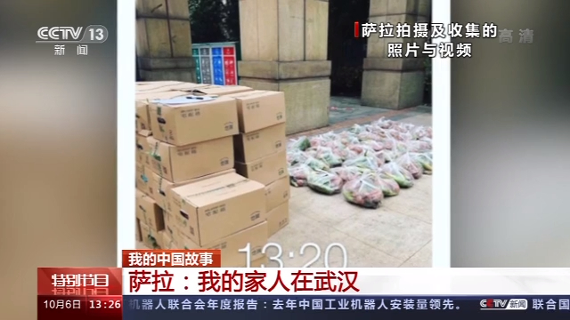 为了让更多人了解事实,萨拉把自己的疫情生活通过社交媒体发布了出来。1月底,网络传言武汉买不到食物,她就进超市拍下食物琳琅满目的视频。学校发放的物资塞满了小车的后备箱,社区发放爱心菜,有鱼有肉。这些场景都被萨拉通过网络展现给全球。