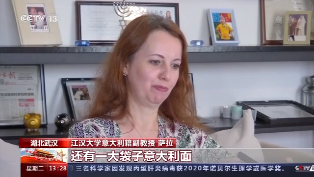 江汉大学意大利籍副教授 萨拉:有一个萍水相逢的邻居给我了一大袋子吃的,里面有土豆、火腿,还有一大袋子意大利面。有个邻居还在食物袋里留了张纸条,上面写着,萨拉,坚强起来,相信我们中国一定能渡过难关的。在困难的时候,你的朋友给你全力的帮助,经历这些,我们之间不仅是友情,更成为了家人。