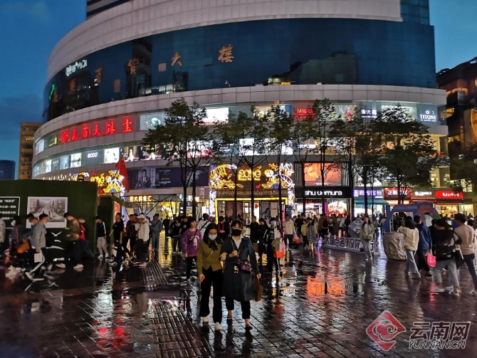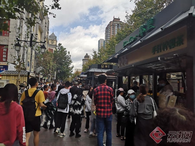 2020年的国庆中秋长假,让人们的出行需求得到了充分的释放。9月30日下午3时,昆明主要的出城高速就已经全线飘红。然而,对于位于昆明主城核心区的南屏步行街来说,本地客源的外流却丝毫没有影响国庆中秋假日经济的火爆氛围。一过中午,南屏街、正义路等主要街道已是人来人往,穿流如织了。
