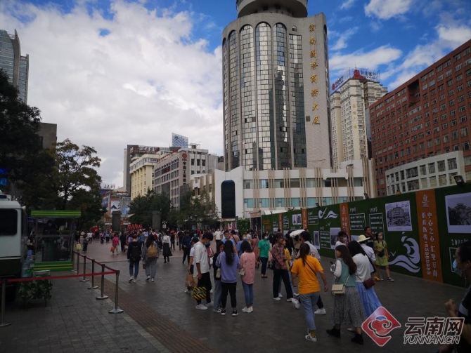今年国庆中秋黄金长假,南屏步行街就成为外地游客领略昆明魅力的最佳场所。家庭出行、结伴旅游、独自闲逛,背包的、拉着行李的,在街上随处可见。