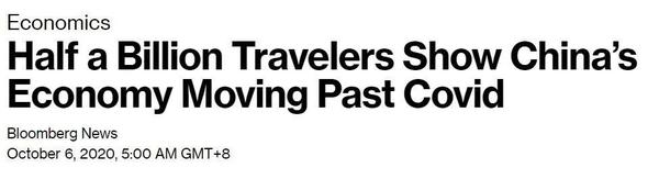 美国彭博社报道说,中国已基本控制住新冠疫情,黄金周展示了中国对经济复苏和公共卫生保障措施的信心。