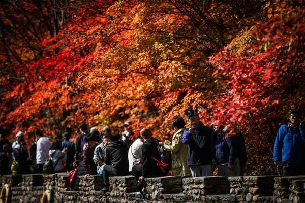 10月7日,游客在辽宁省本溪满族自治县大石湖风景区内游玩。新华社记者 潘昱龙/摄