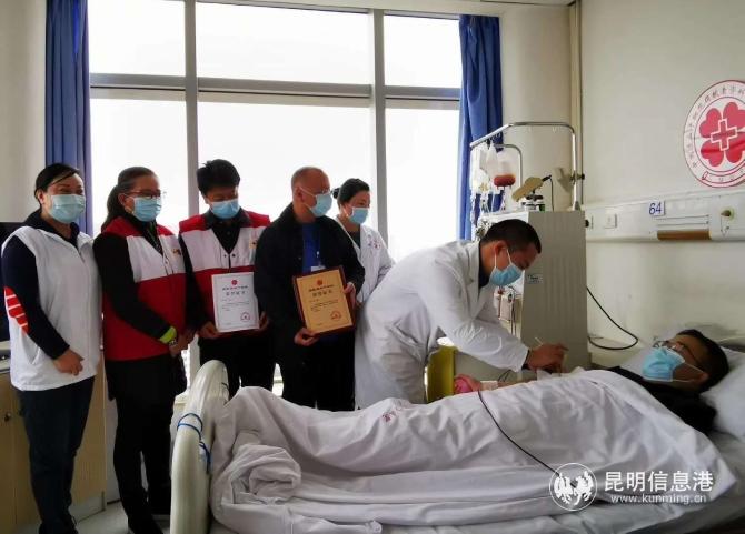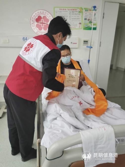 值得一提的是,捐献当天,迪庆州红十字会常务副会长李涛也专程从香格里拉到昆明来陪伴马先生采集造血干细胞,并给他献上了哈达,李副会长说”小马的这种行为值得我们致敬,也值得我们学习,哪怕医疗条件再发达,哪怕病患家属有金山银山,没有像小马这样的爱心人士,没有这群大义捐献造血干细胞的人,还是无法挽救患者,所以,对于小马的这种善举,我们很重视,也一定会好好宣扬,希望更多的人加入到捐献造血干细胞的行列中来!“