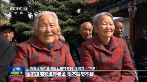 山西省运城市盐湖区五曹村村民 任引龙(76岁):国家给咱发这个养老金,根本就想不到政策这么好,国家对老年人这么关心。