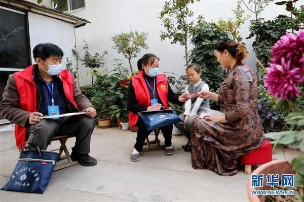 11月1日,山东省枣庄市市中区齐村镇齐东村人口普查员在居民家中进行现场登记。 当日,第七次全国人口普查开启现场登记。 新华社发(孙中喆摄)