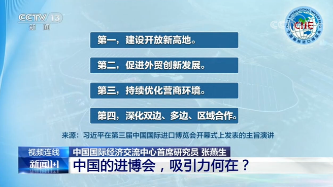 在新冠肺炎疫情全球蔓延、世界经济持续低迷的背景下,第三届中国国际进口博览会今晚在上海开幕。新朋友、老朋友共赴“东方之约”,当中国开放的大门越来越大,携手共进、合作共赢,进博会这个平台又将怎样发挥作用?《新闻1+1》今日连线中国国际经济交流中心首席研究员张燕生,共同关注:中国的进博会,吸引力何在?