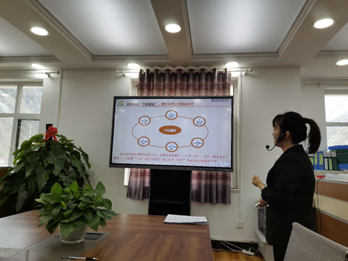 曲库乎乡党委副书记马晓芸介绍党建工作开展情况。人民网 吴兆飞摄