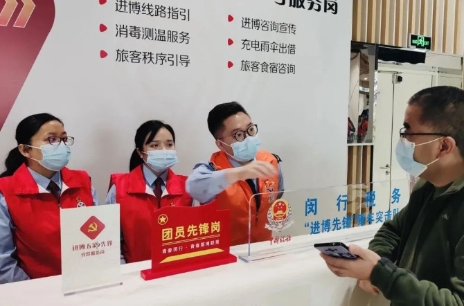 第三届进博会期间,国家税务总局上海市闵行区税务局组建了由50多名青年骨干构成的青年突击队,在“进博五彩先锋”7号服务岗提供服务。