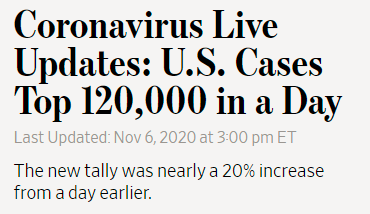 △《华尔街日报》报道:美国单日新增新冠肺炎确诊病例超12万例