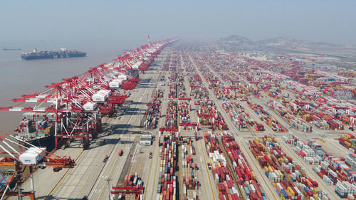 上海洋山港集装箱码头(3月18日摄,无人机照片)。新华社记者 丁汀 摄