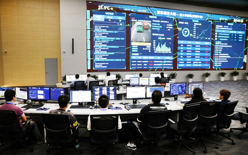 工作人员在上海市浦东新区城市运行管理中心内工作(2019年8月31日摄)。新华社记者 方喆 摄