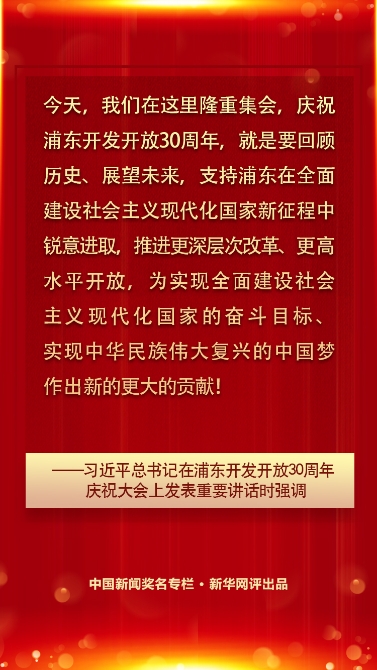 11月12日,浦东开发开放30周年庆祝大会在上海市举行。习近平总书记在会上发表重要讲话,充分肯定浦东开发开放30年取得的显著成就,对浦东推进更深层次改革、更高水平开放提出新要求、作出新部署。