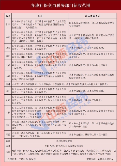 多地企业社会保险费交由税务部门征收