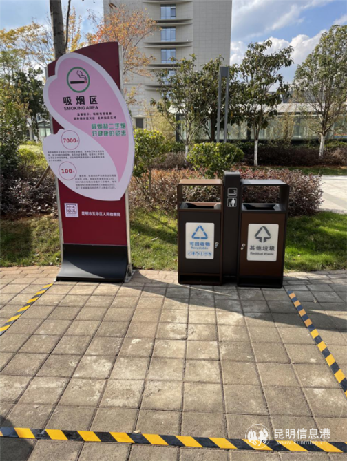 院内设有专门的室外吸烟区,平时有专门的工作人员负责引导外人来此处吸烟。作为无烟机关单位大力支持控烟劝导(巡查)员、控烟监督员、控烟督导员工作,做到有人管,有人督,有人教,全方位保证禁烟区域内无人吸烟。在食堂、厨房、泔水收集区等地方安放监控设施,并在公共区域设备大屏显示设备,进行实时、全员监督。