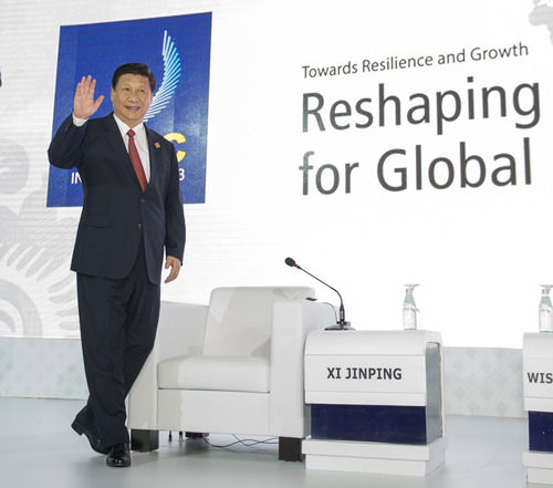 2013年10月7日,国家主席习近平在印度尼西亚巴厘岛出席亚太经合组织工商领导人峰会,并发表《深化改革开放共创美好亚太》的重要演讲。新华社记者 李学仁 摄