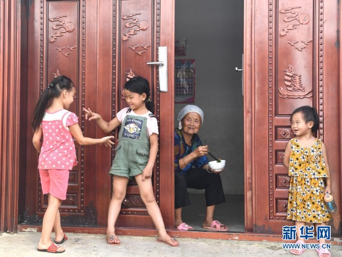 在广西都安瑶族自治县下坳镇车家庄易地扶贫搬迁安置新区,小朋友在玩耍(8月18日摄)。新华社记者 周华 摄