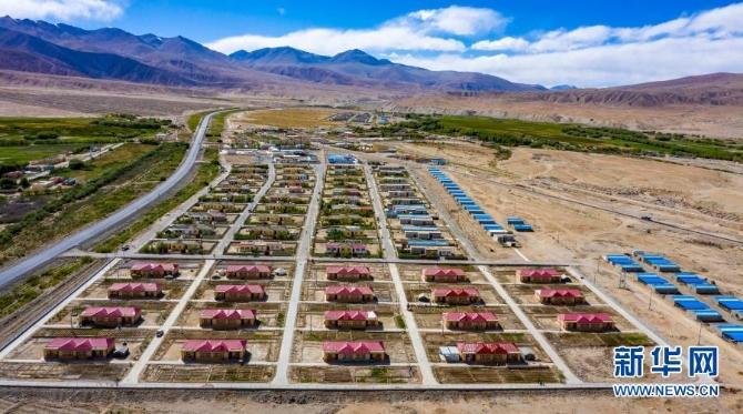 这是2019年8月9日拍摄的新疆阿勒泰地区青河县易地扶贫搬迁安置点阿格达拉镇。新华社记者 沙达提/摄
