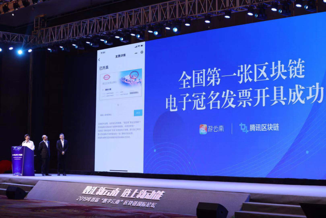 全国第一张区块链电子冠名发票在云南开出。孙兵 摄