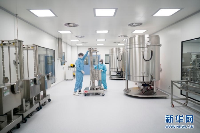 8月14日,在阿根廷布宜诺斯艾利斯省加林市的新冠疫苗研究实验室内,科研人员为生产由英国牛津大学和阿斯利康制药公司合作研发的新冠疫苗做准备。新华社发(马丁·萨巴拉 摄)
