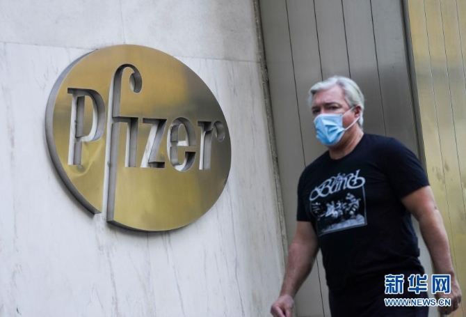 11月9日,行人从位于美国纽约的辉瑞全球总部大楼前走过。新华社记者 王迎 摄