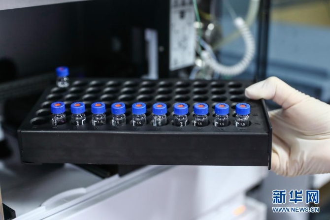 4月11日,工作人员在国药集团中国生物新冠疫苗生产基地质量检定部门对新型冠状病毒灭活疫苗样品进行杂质检测。新华社记者 张玉薇 摄