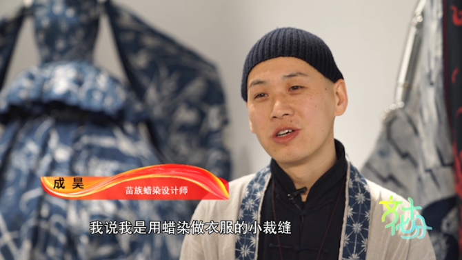 苗族蜡染设计师 成昊:在接触蜡染之前,我就一直说自己是用中国文化讲故事的小裁缝,那接触到蜡染之后,就慢慢地把自己的定位改了,我说我是用蜡染做衣服的小裁缝,蜡染让我的设计更有了灵魂。