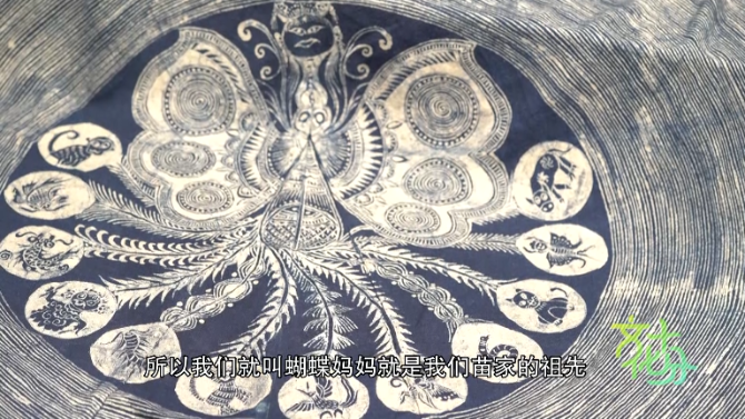 苗族蜡染技艺传承人 杨乃金:蝴蝶妈妈生了12个蛋,最后一个蛋是姜央,姜央才是我们人类,所以我们就叫蝴蝶妈妈就是我们苗家的祖先。
