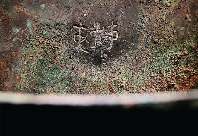 殷墟是中国连续发掘时间最长、清理遗迹最多、出土文物最丰富的古遗址,殷墟甲骨文的重大发现在中华文明乃至人类文明发展史上具有划时代的意义。图为河南安阳博物馆展出的殷墟妇好墓出土的铜甗内壁上的铭文(2018年10月12日拍摄)。 新华社记者 李安/摄