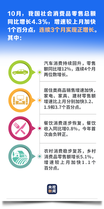 国家统计局11月16日公布的数据显示,10月我国餐饮收入4372亿元,同比增长0.8%,增速年内首次转正。餐饮业的不断回暖、消费市场的日益复苏,显示出在国民经济稳中向好、长期向好的态势下,居民消费能力逐步恢复。
