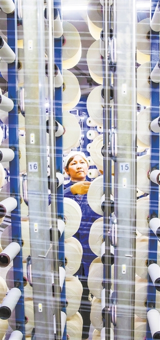12月9日,位于江苏省海安市立发街道的江苏联发纺织股份有限公司,员工在加工出口的纺织品。当地纺织企业瞄准市场需求,加大产品研发力度,开发的新产品出口东南亚、欧美等国家和地区。向中林/摄