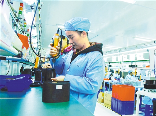 12月9日,江西省安远县得辉达科技有限公司员工在赶制出口新加坡的订单。安远县外贸出口逆势增长,今年1月至10月,外贸出口完成年度目标的121.87%,同比增长91.07%。 唐丽琴/摄