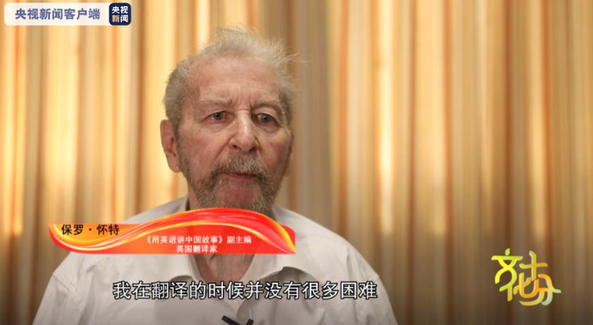 《用英语讲中国故事》副主编 英国翻译家 保罗·怀特:这本书脉络很清晰,我在翻译的时候并没有很多的困难,在我创作的过程中,很多工具书帮我更好地理解了中国文化。举一个例子,中国人说的“桃李满天下”,古语中“桃李”指的是这个老师教出了很多的优秀学生,那我在翻译的时候就翻译成了“栋梁之材”。