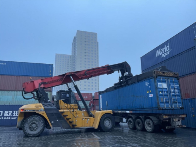 货场门口,等待卸货的卡车排起大队。在一旁给谢锐打下手的集装箱卡车司机雷军说,今年以来,中欧班列的火爆也让卡车司机们忙个不停。“有时候可能最长就要四五个小时才能进站。因为车辆太多了,货运量太大了。车站里边也干不过来,所以排队是难免的”。