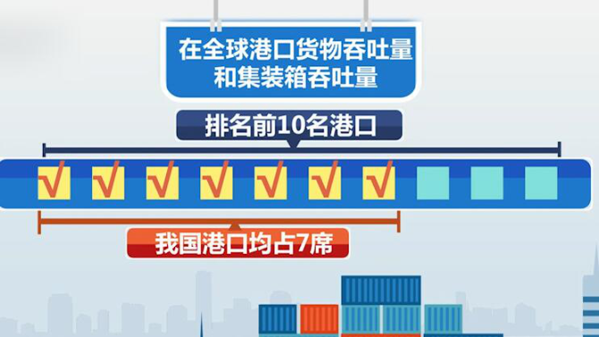 交通运输部最新数据显示,“十三五”期间,我国港口规模不断扩大,沿海港口万吨级及以上泊位数2530个;在全球港口货物吞吐量和集装箱吞吐量排名前10名的港口中,我国港口均占7席;建设集疏运公路1500公里以上;集装箱铁水联运量年均增长20%,重点区域煤炭集港全部改由铁路和水路运输。