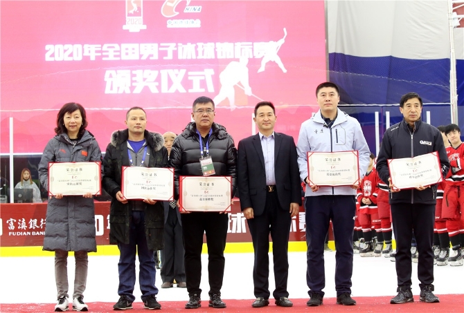 颁奖仪式上,赛会裁判监督张志公布了全国男子冰球锦标赛最终排名、运动员个人奖项、团队奖项以及优秀裁判员奖项获得者!