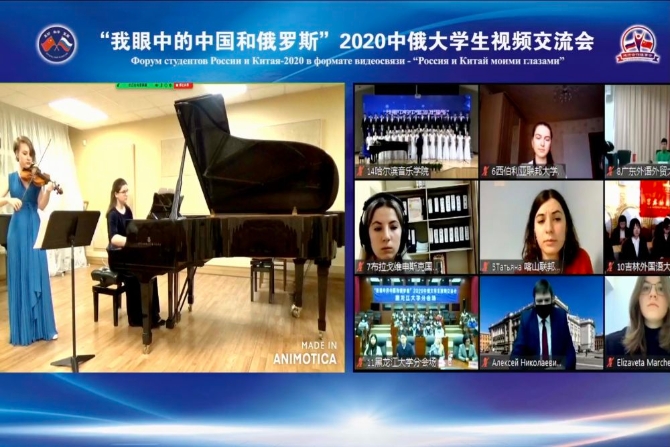 “我眼中的中国和俄罗斯”2020中俄大学生视频交流会现场。(视频截图)