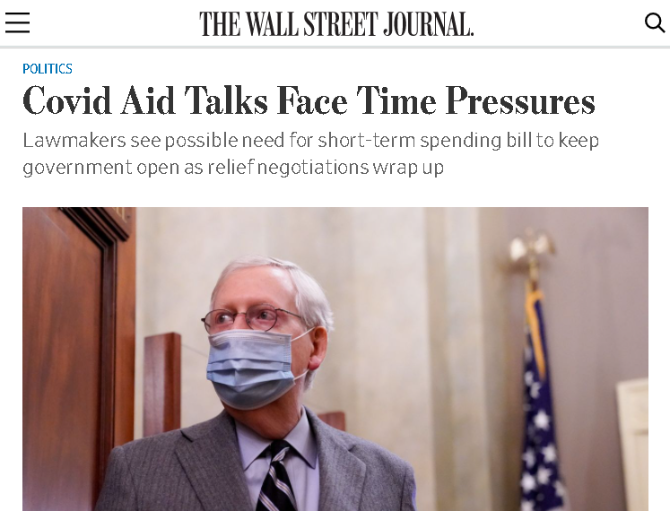 虽然新一轮纾困计划的大部分内容符合预期,但国会领袖仍在就部分内容讨价还价。根据一些参与谈判人士的说法,新一轮纾困计划有可能“回避”了两个最棘手的问题:为州和地方政府提供资金,以及为在疫情期间运营的企业提供免责保护。此外,国会领袖打算将这一纾困法案附在一个全年支出法案中,这项支出法案将用于在目前的资金耗尽后维持联邦政府的正常运转。