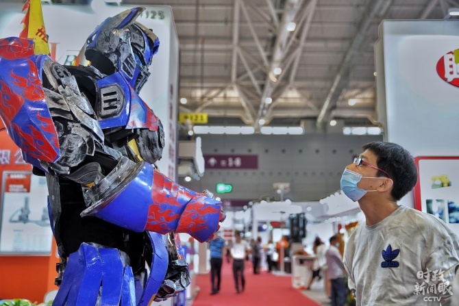 △11月25日,2020粤港澳大湾区数字经济大会在深圳举行。这是机械制造设备机器人展区。