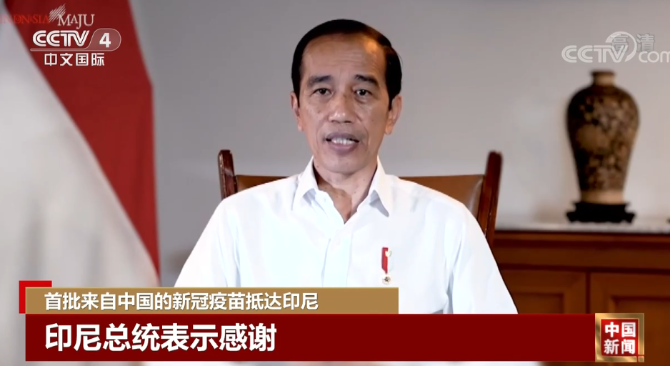 印尼总统佐科表示,来自中国的新冠病毒疫苗对印尼人民来说是个好消息。
