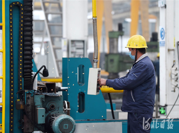 2020年11月25日,在河北省望都县住宅现代化产业园,河北钢山杭萧钢结构工程股份有限公司工人在车间内加工装配式建筑部件。河北日报记者 赵永辉 摄